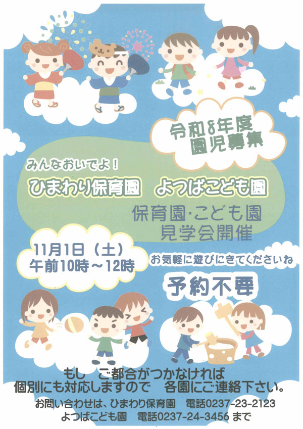 ご都合がつかない場合でも個別に対応いたしますので、各園にご連絡ください。